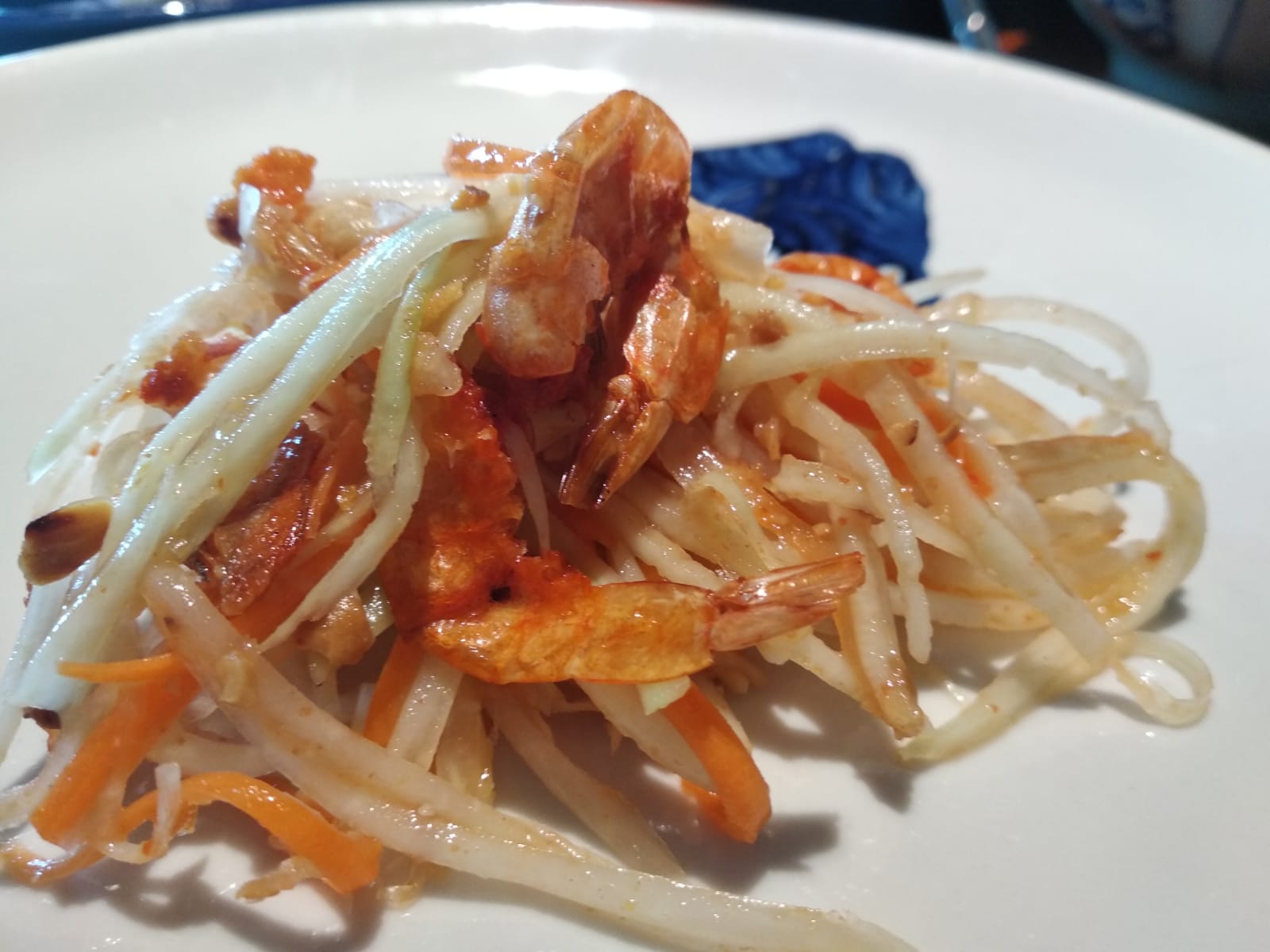 木瓜沙律加入了炒香的蝦乾,份外迷人!